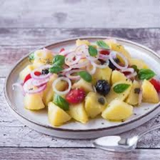 Pantesca salad is a traditional dish from the island of Pantelleria, located off the coast of Sicily, Italy. It is a fresh and flavorful salad that typically includes tomatoes, capers, olives, onions, and potatoes. Here is a recipe for Pantesca salad: