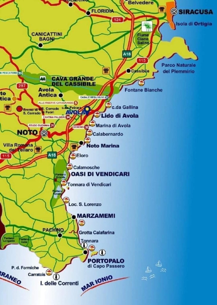 - Camping Eloro: This camping site is located near the town of Noto, about 10 km south of Vendicari Nature Reserve. It’s situated just a few steps from a beautiful sandy beach and offers a range of facilities, including hot showers, washing machines, and a bar and restaurant.