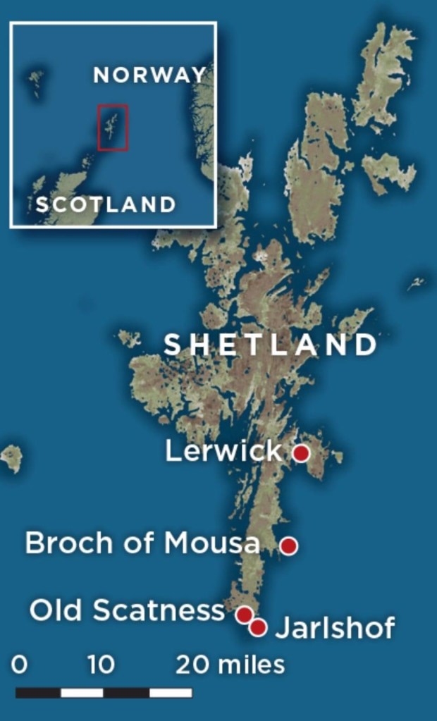 Let’s face it, what most of us know about the Shetland Islands pretty much revolves around a diminutive, little pony that children are allowed to ride at carnivals or use as load bearing animals in the mines. That the archipelago lies in the middle of an ocean (110 miles north of mainland Scotland and 140 miles west of Norway), in a somewhat remote part of the world, tends to lead us to erroneously believe civilization ignored it for thousands of years. Also, that local resources, such as timber, have always been limited, suggests that no one would bother with populating the windswept islands. In an era when ships were propelled by either wind or manpower, the Shetland Islands would not exactly be an attractive place to settle.