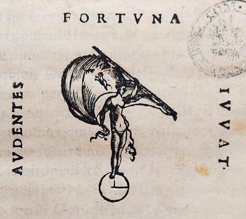 In the edition of the work of ๐ข๐๐๐ฎ๐๐ถ๐ผ ๐๐ฏ๐ฏ๐ถ๐ผ๐๐ถ (bishop of Pistoia in odor of heresyโฆ) printed in 1566 under the title ๐๐ณ๐ข๐ต๐ช๐ฐ ๐ข๐ฅ ๐ช๐ญ๐ญ๐ญ.๐ฎ๐ถ๐ฎ ๐ฆ๐ต ๐ณ.๐ฎ๐ถ๐ฎ ๐ฅ๐ฅ. ๐๐ถ๐ญ๐ช๐ถ๐ฎ ๐๐ฆ๐ญ๐ต๐ณ๐ช๐ถ๐ฎ ๐ข ๐๐ถ๐ถ๐ฆ๐ณ๐ข๐ฆ ๐๐ฐ๐ณ๐ข๐ฆ ๐ฅ๐ถ๐ค๐ฆ๐ฎ ๐ด.๐ณ.๐ฆ. ๐ฑ๐ณ๐ฆ๐ด๐ฃ. ๐ค๐ข๐ณ๐ฅ. ๐ต๐ช๐ต. ๐. ๐๐ฆ๐ต๐ณ๐ช ๐ข๐ฅ ๐๐ช๐ฏ๐ค๐ถ๐ญ๐ข ๐ข๐ณ๐ค๐ฉ๐ช๐ฆ๐ฑ๐ช๐ด๐ค๐ฐ๐ฑ๐ถ๐ฎ ๐๐ข๐ถ๐ฆ๐ฏ๐ฏ๐ข๐ฆ ๐ข๐ฃ ๐๐ค๐ต๐ข๐ถ๐ช๐ฐ ๐๐ฃ๐ฃ๐ช๐ฐ๐ด๐ช๐ฐ, one of his typographic marks is depicted, namely fortune with a sail and feet on the sphere, and inside the sail, rather small ๐ด๐ฎ๐๐๐ผ ๐ฒ ๐๐ผ๐ฝ๐ผ.