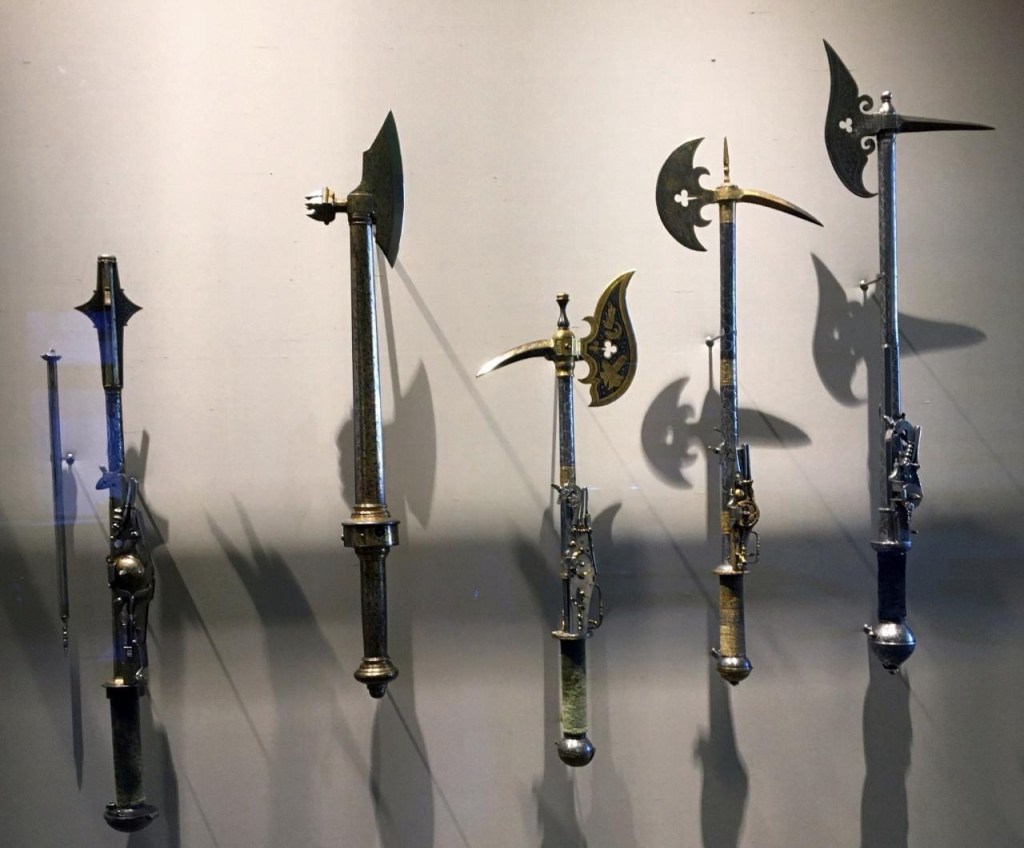 - Wheellock Axes: Combining a battle axe with a wheellock firearm, this weapon offered the devastating impact of an axe with the surprise of a single-shot capability, making it a formidable tool for shock and awe in close-quarters combat.