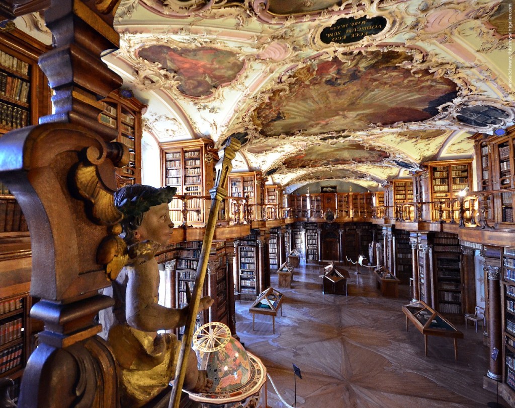 Abbey Library of Saint Gall, located in St. Gallen, Switzerland, is indeed one of the oldest and most beautiful libraries in Europe. It’s renowned for its stunning baroque architecture and its rich collection of medieval manuscripts. The library, part of the Abbey of St. Gall, a UNESCO World Heritage Site, houses around 160,000 volumes, including some of the oldest and most important books in the world. The collection spans from the 8th to the 15th century, featuring an impressive array of early medieval texts, some of which are illuminated manuscripts. The library’s architecture, with its intricate wood carvings, frescoed ceilings, and a famous globe collection, adds to the allure, making it a true gem for both scholars and visitors.