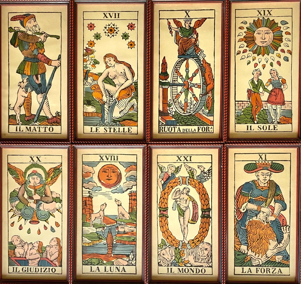 The tarot is a deck of cards used primarily for divination and spiritual purposes, but also for card games in some cultures. A standard tarot deck contains 78 cards, divided into two main groups: the Major Arcana and the Minor Arcana.