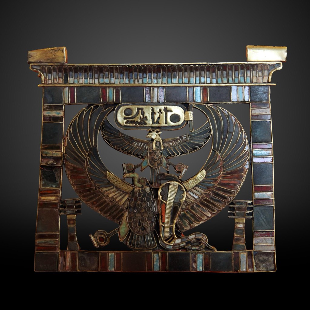 Amulet belonging to Ramses II, 1279- 1213 BCE. Gold, glass and turquoise, Louvre Museum, Paris.